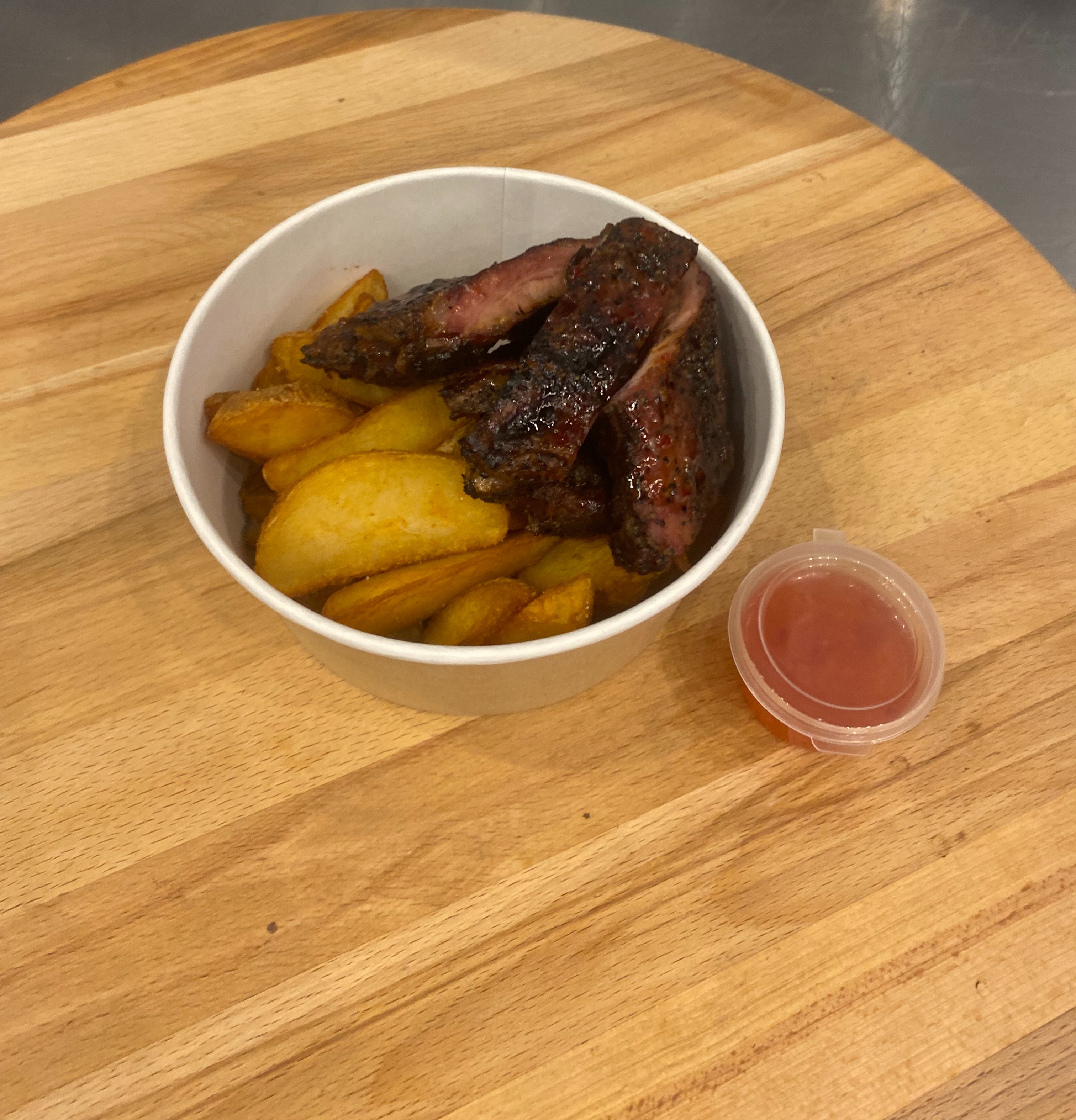 Свиные ребра BBQ 250гр. + соус 30гр. + картофель фри 150гр.